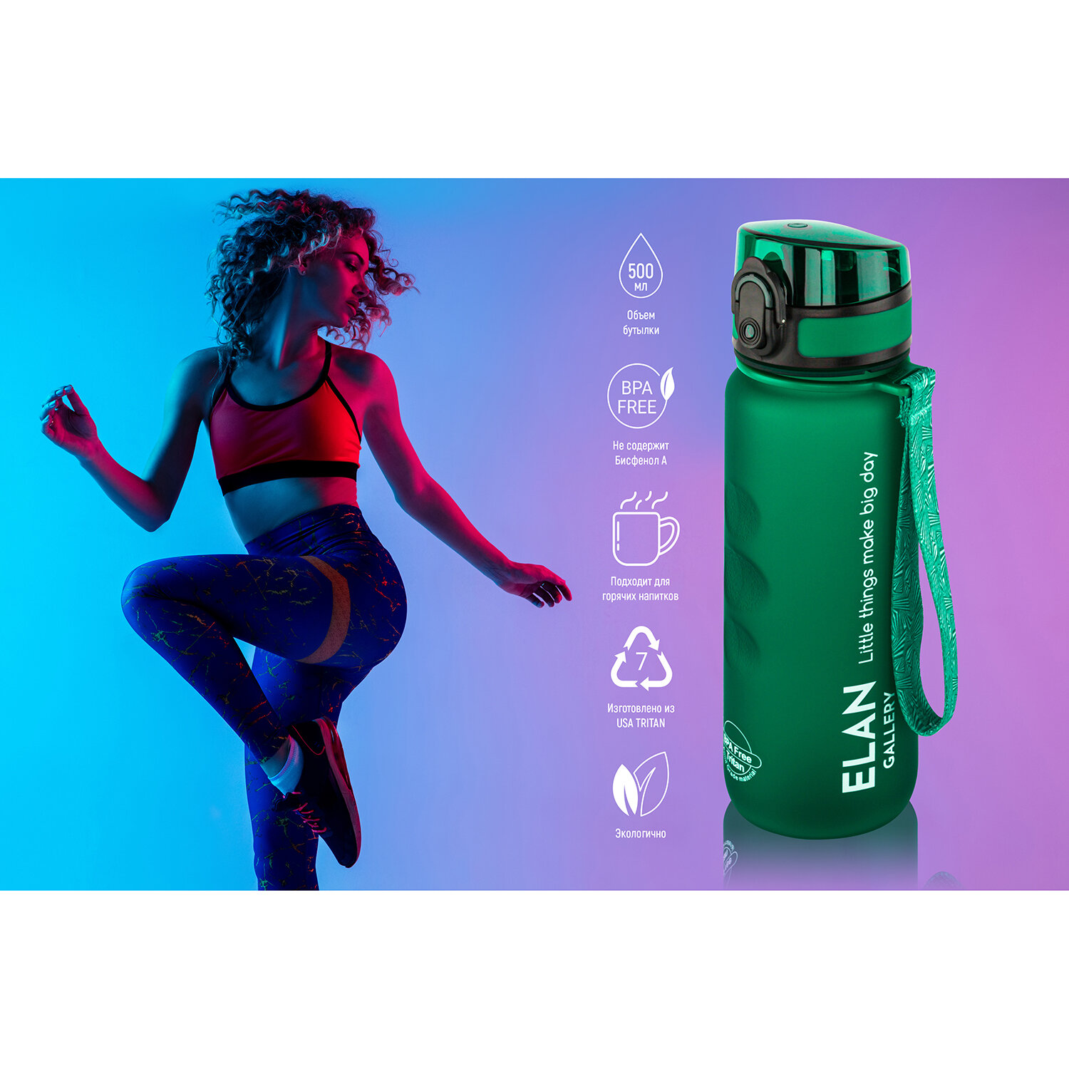 СохранитьБутылка для воды спортивная, для холодных и горячих напитков 500 мл Elan Gallery Style Matte,темно-зеленая интересное:
