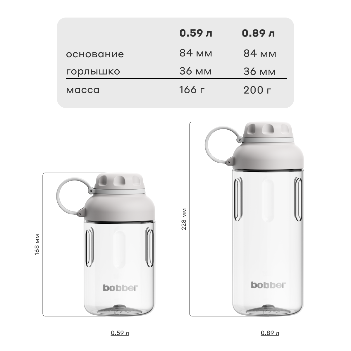 Бутылка спортивная для воды Bobber Tritan серый, 590 мл