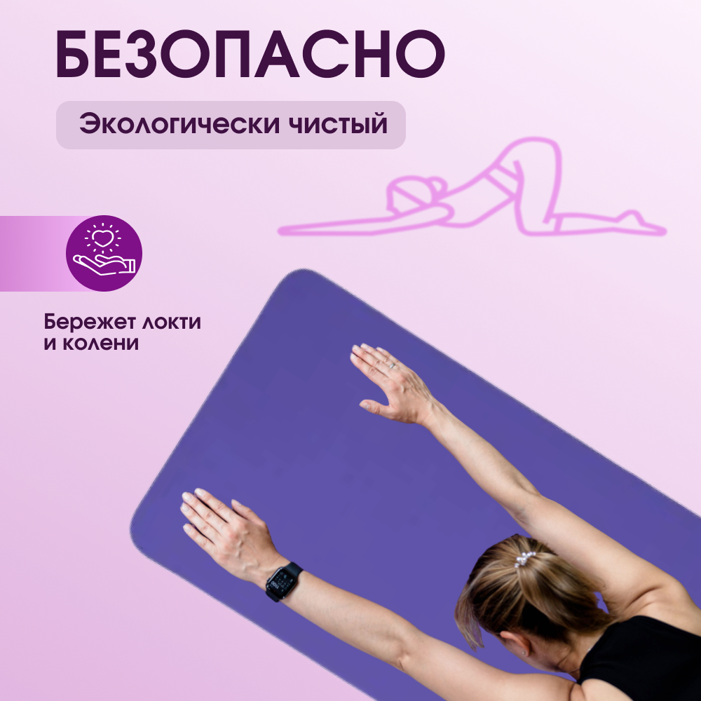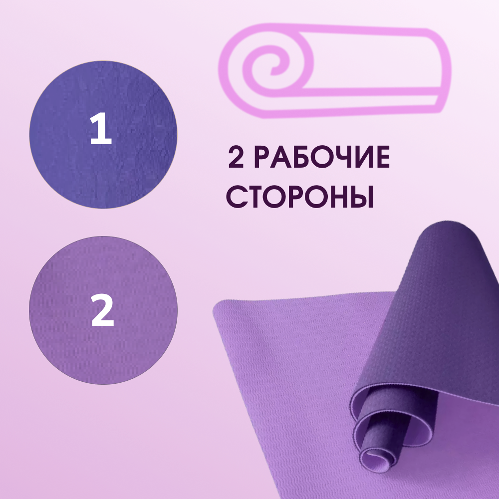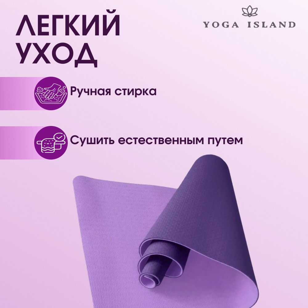 Коврик для йоги и фитнеса Yoga Island, нескользящий, ТПЕ, 0.6 см, 183×61 см, сиреневый