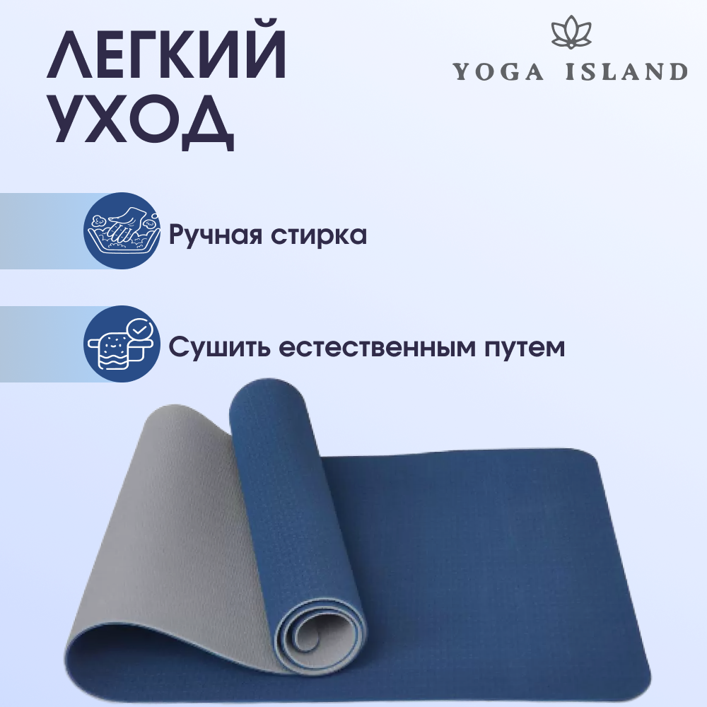 Коврик для йоги и фитнеса Yoga Island, нескользящий, ТПЕ, 0.6 см, 183×61 см, голубой