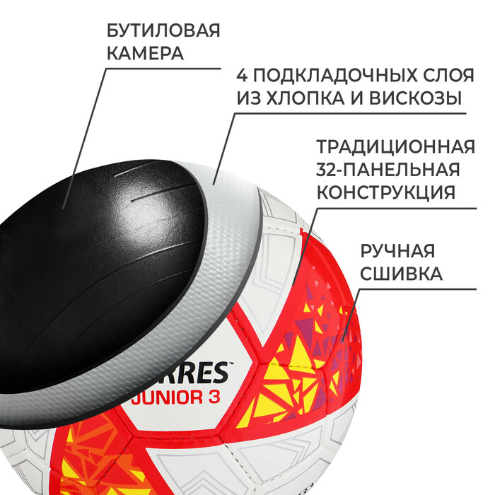 Футбольный мяч TORRES Junior-3, F323803, ручная сшивка, 32 панели, р. 3, PU