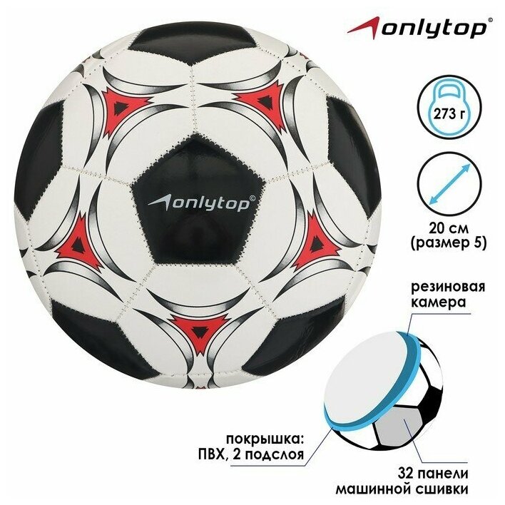 Футбольный мяч ONLYTOP, машинная сшивка, 32 панели, р. 5, PVC