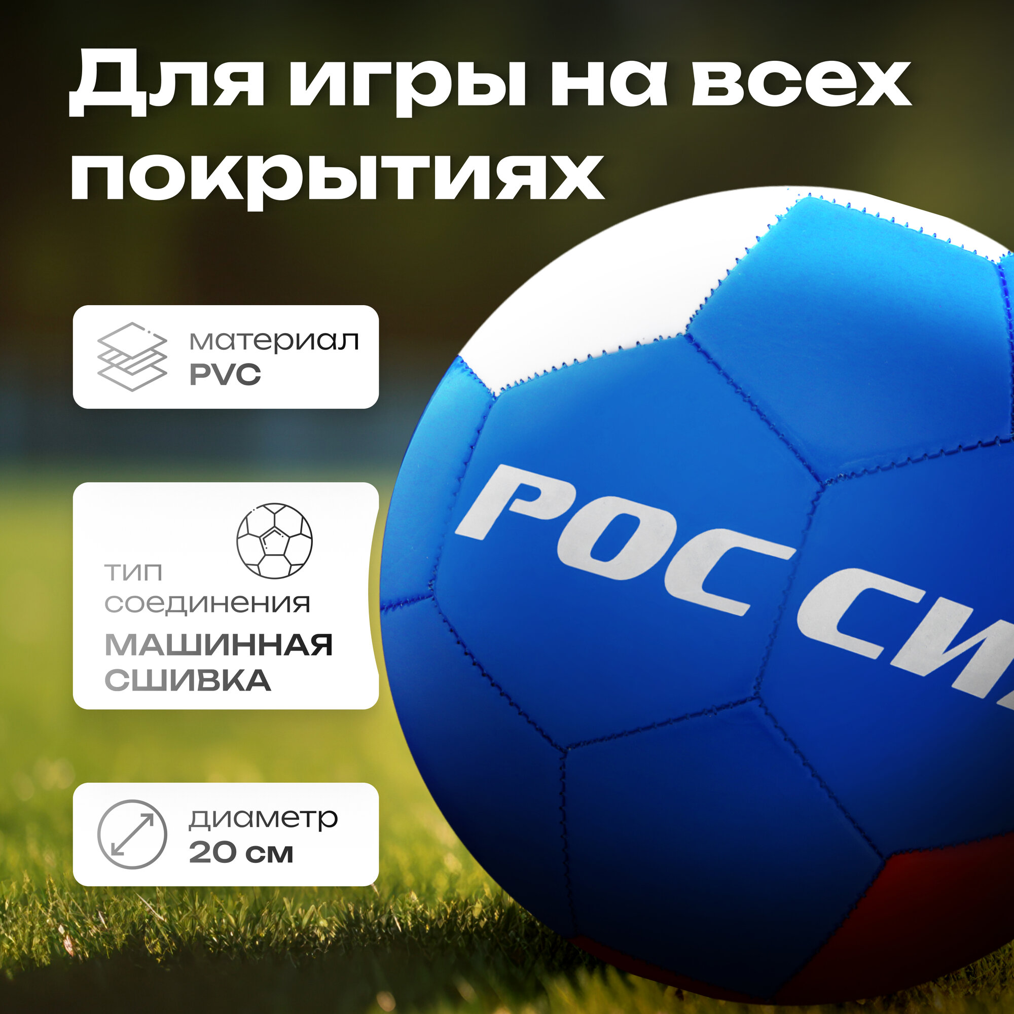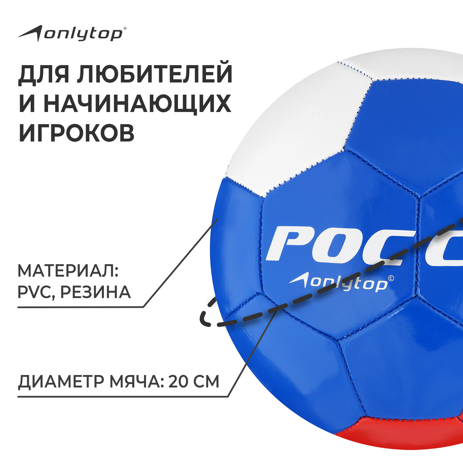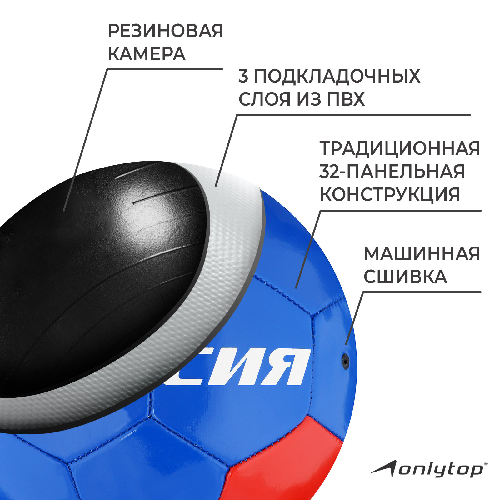 Футбольный мяч ONLYTOP «Россия», машинная сшивка, 32 панели, р. 5, PVC