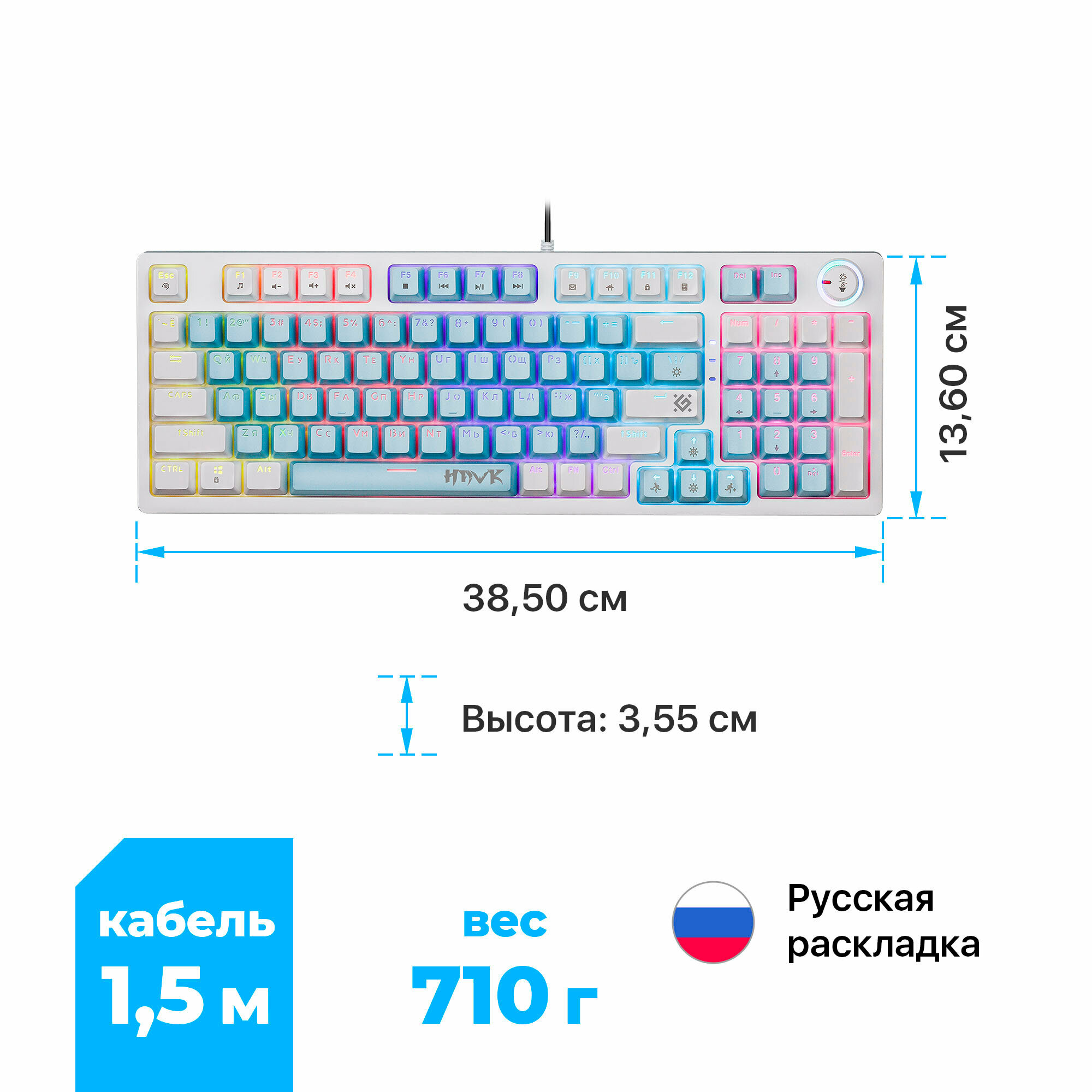 Клавиатура Defender HAWK GK-418 RU RGB (45422)