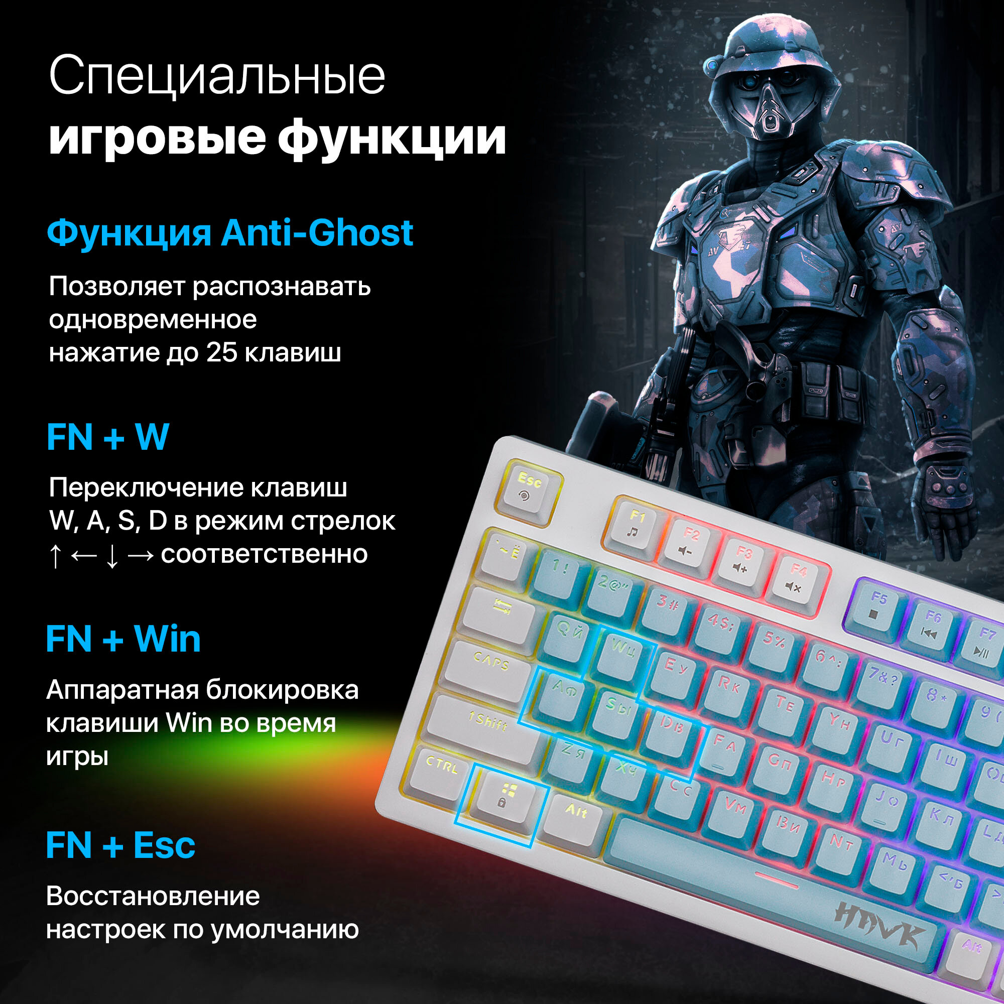Игровая клавиатура Defender Hawk GK-418, белый (45422)