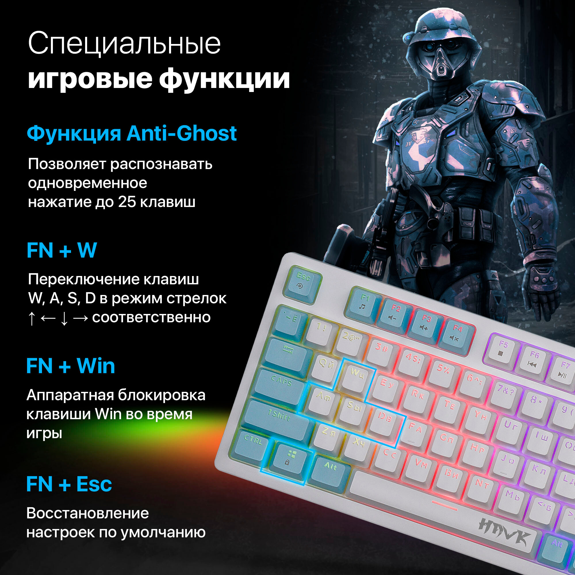 Клавиатура Defender Hawk GK-418, USB, белый/голубой интересное: