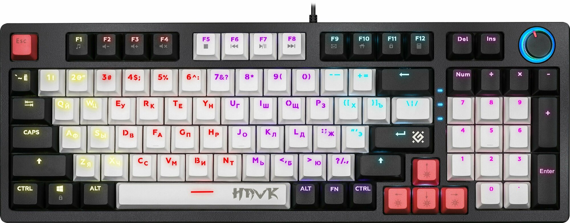 Клавиатура игровая Defender Hawk GK-418 97кл. механическая радужная подсветка чёрно-белые клавиши - 1.5м чёрная
