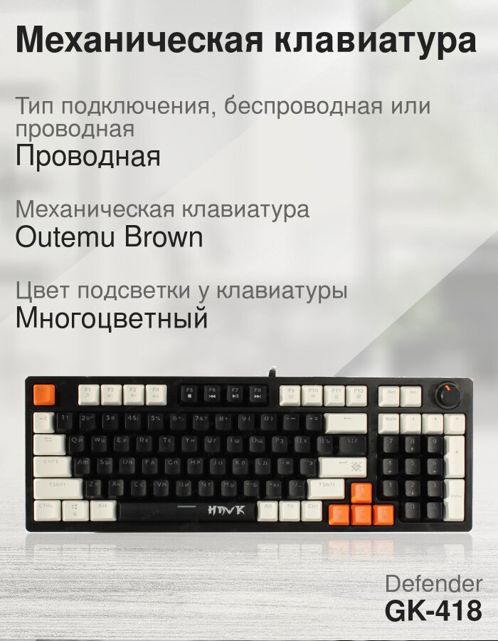 Клавиатура игровая Defender Hawk GK-418 97кл. механическая подсветка - коричневые свитчи чёрная 1.5м интересное: