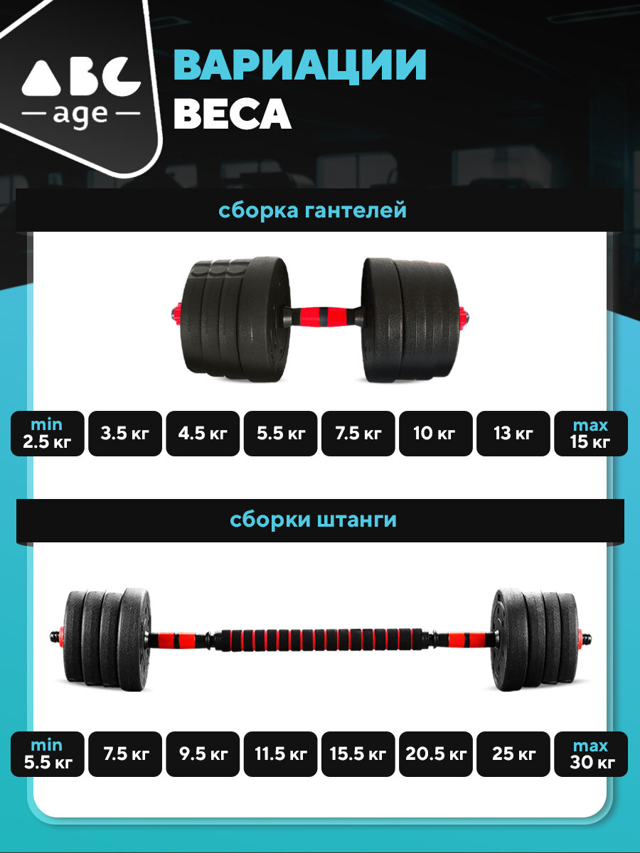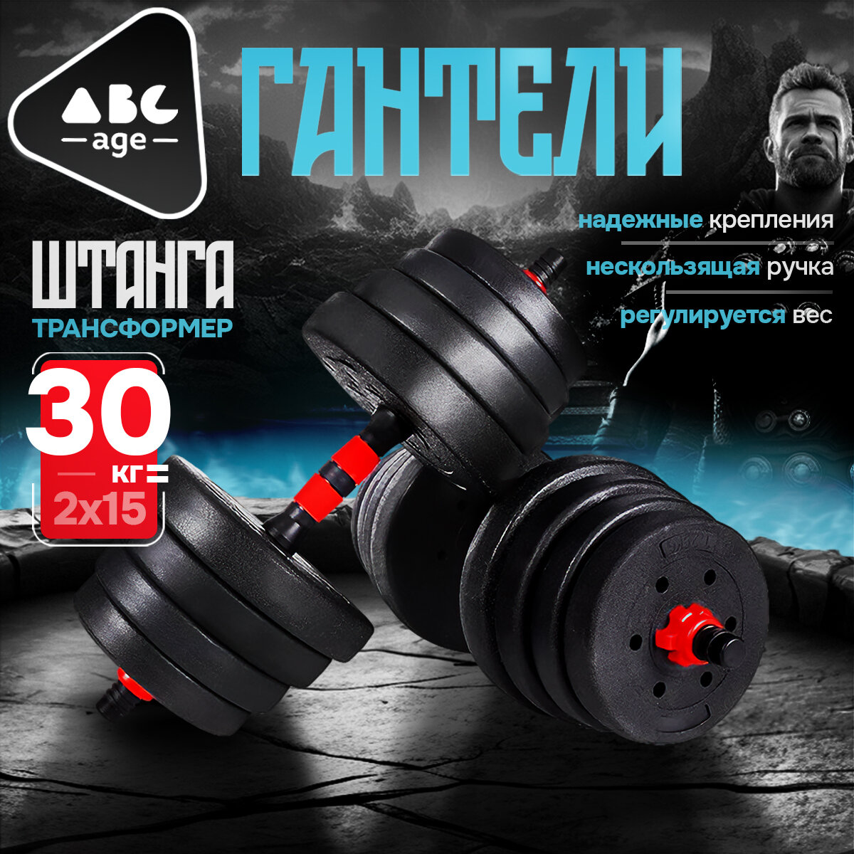 Набор 20кг разборных гантель AbcAge 2х10кг + гриф для штанги