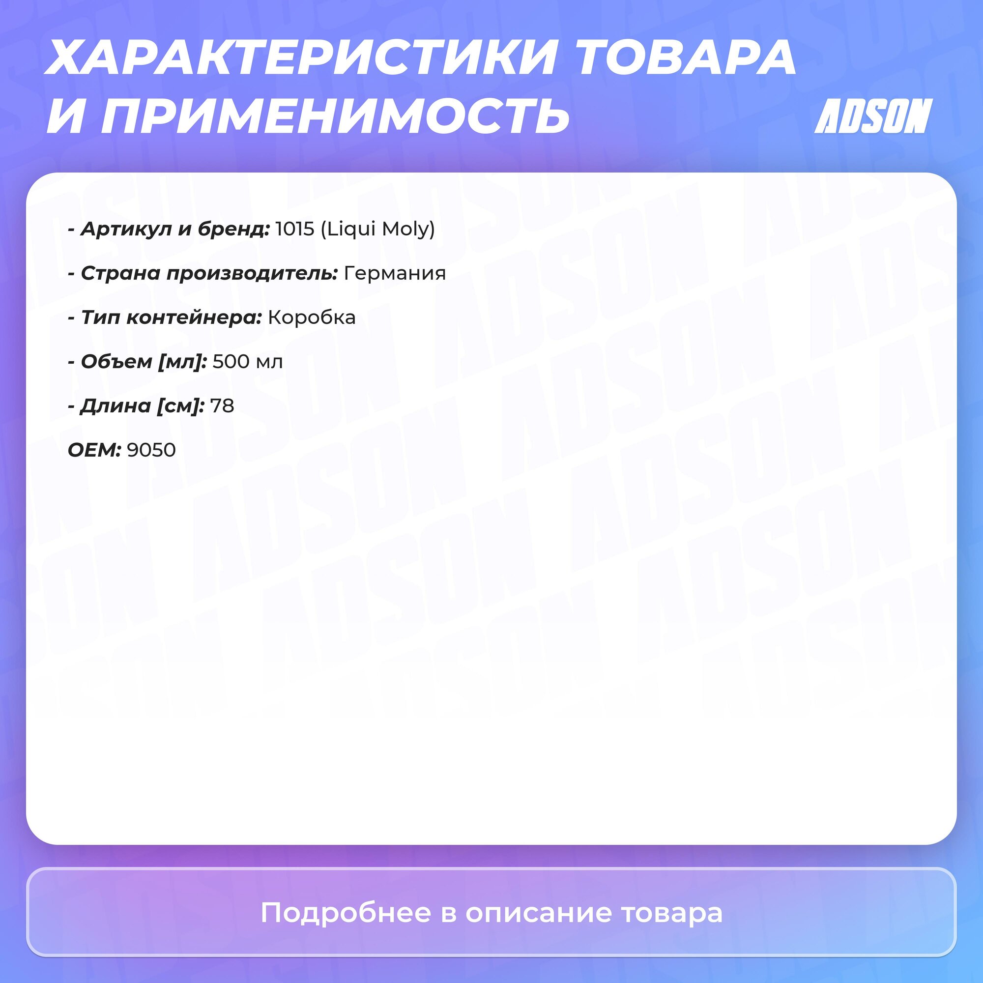 | Подробная комплектация | готовый раствор антифрик. присадки - 1 шт. |