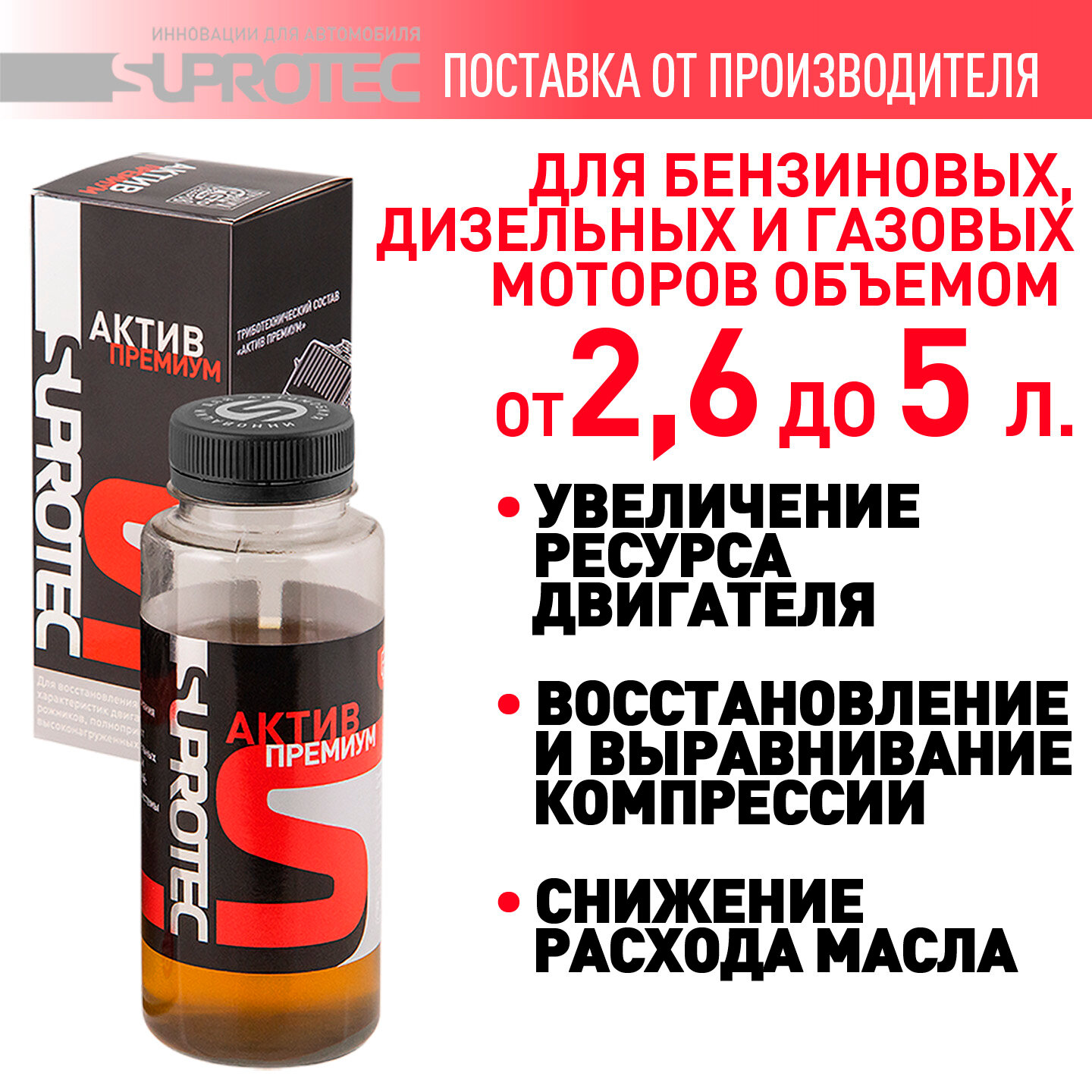 Присадка для большеобъемных двигателей внедорожников, полноприводных автомобилей супротек актив премиум, 200мл