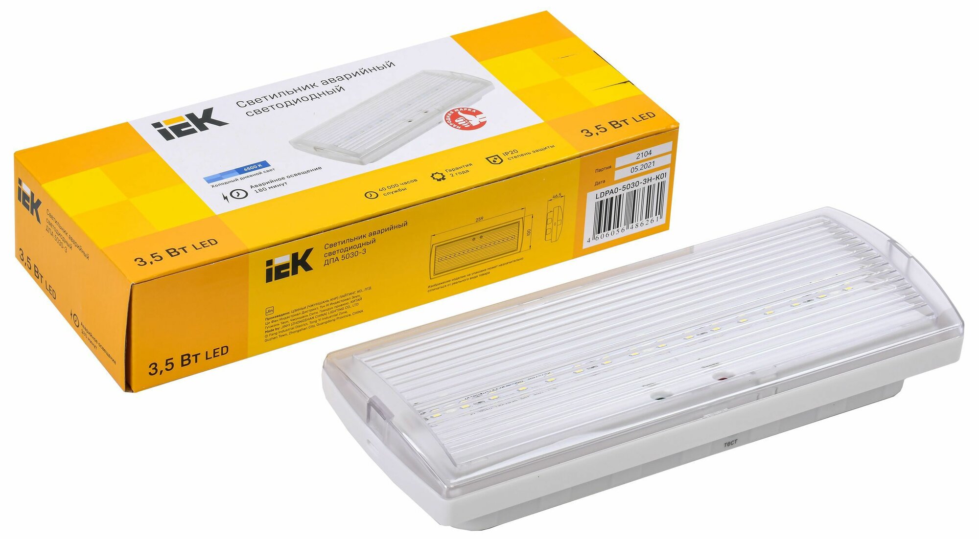 Светодиодный светильник аварийного освещения IEK ДПА 5030-3 4W 6500K IP20 3ч белый интересное: