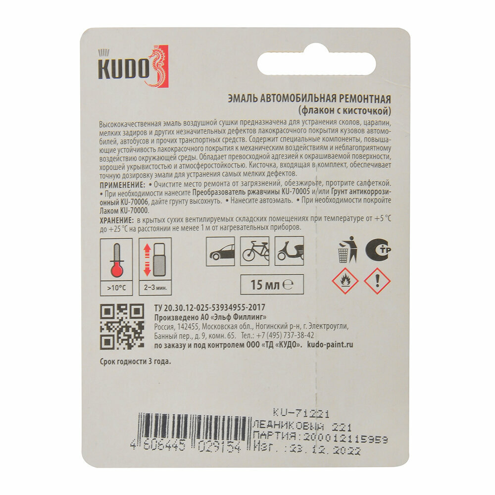 Купить Эмаль автомобильная с кисточкой KUDO ледниковая 221 15 г Ku-71221