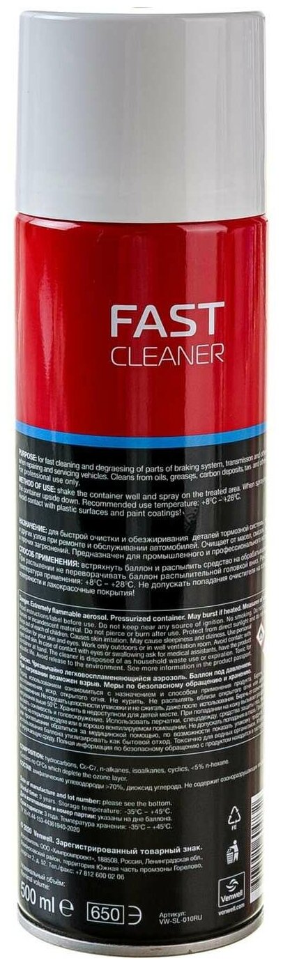 Быстрый очиститель Venwell FAST CLEANER аэрозоль, 500мл VW-SL-010 RU интересное: