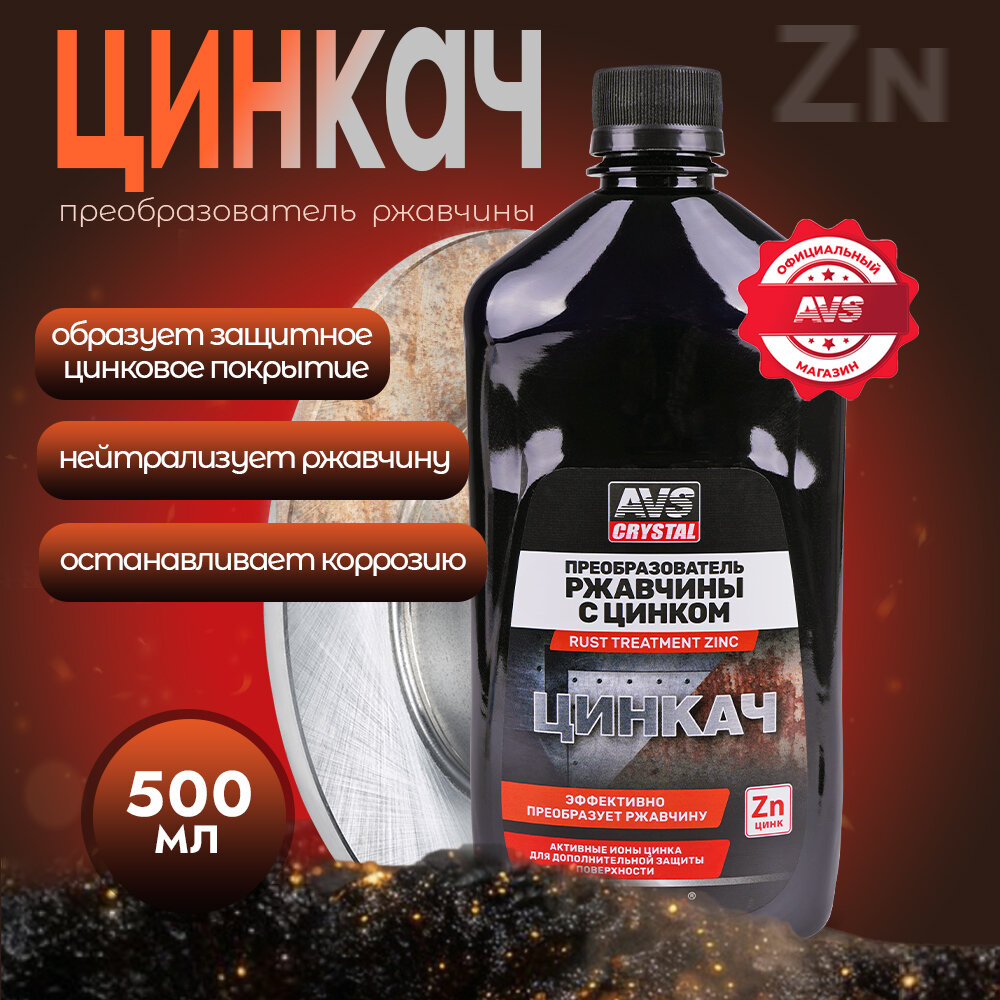 СохранитьПреобразователь ржавчины с цинком, цинкач, 500 мл. AVS AVK-185 интересное: