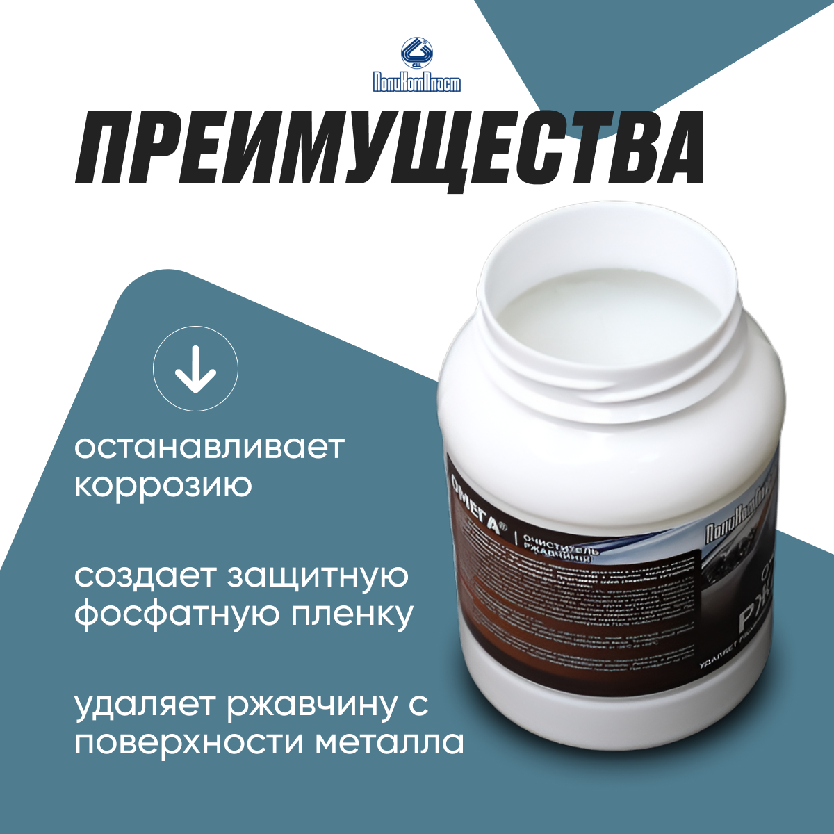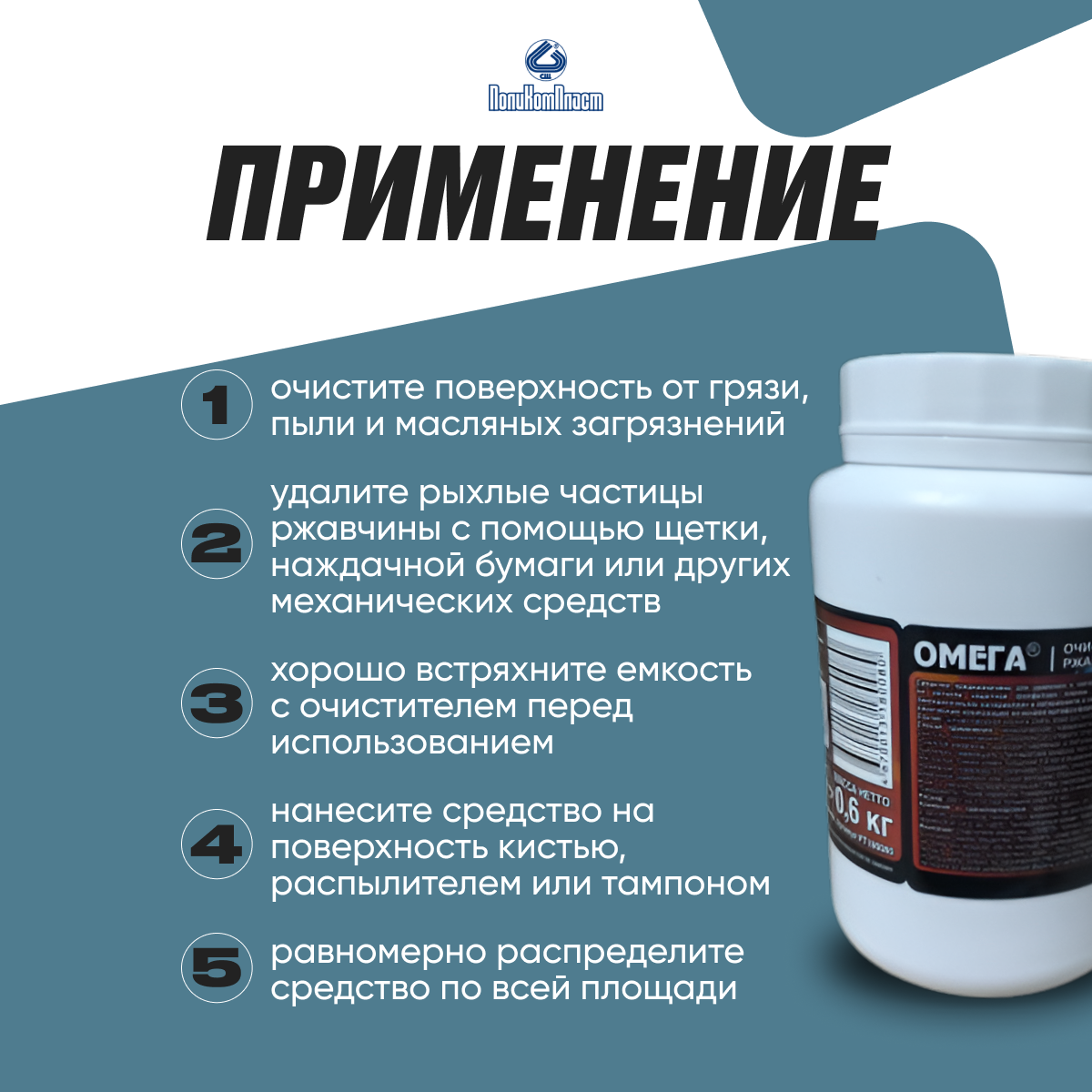 ПолиКомПласт Очиститель ржавчины Омега ПЭТ банка 0,6 кг PT180080