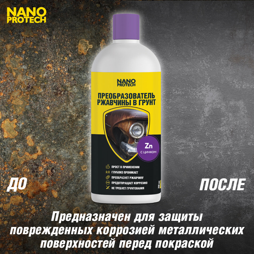 Преобразователь ржавчины (антикор) c цинком / удалитель ржавчины для авто NANOPROTECH, 200 мл. интересное: