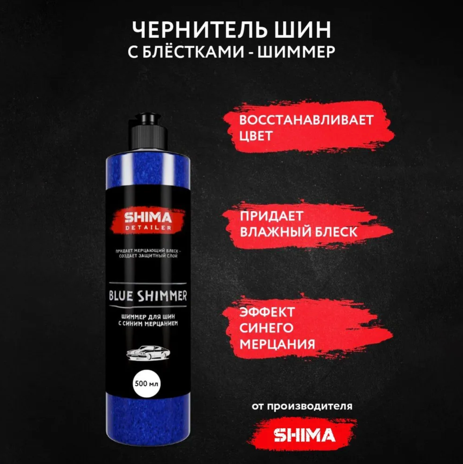 Чернитель резины и шин с синим мерцанием SHIMA BLUE SHIMMER 500 мл интересное: