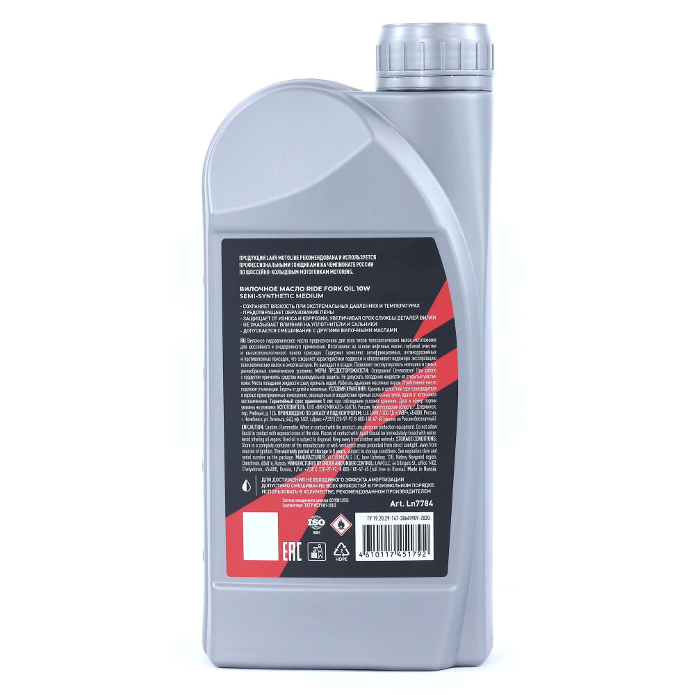 Lavr Ln7784 Вилочное Масло Мото Ride Fork Oil 10W (1Л) LAVR арт. LN7784
