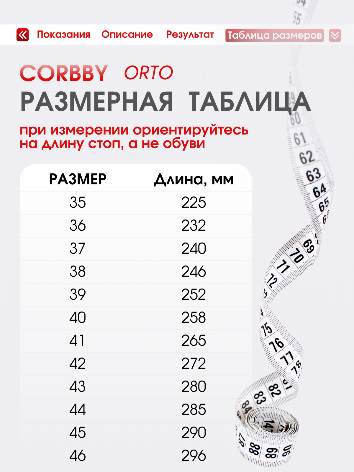 Ортопедические стельки при продольно поперечном плоскостопии Corbby ORTO, размер 46