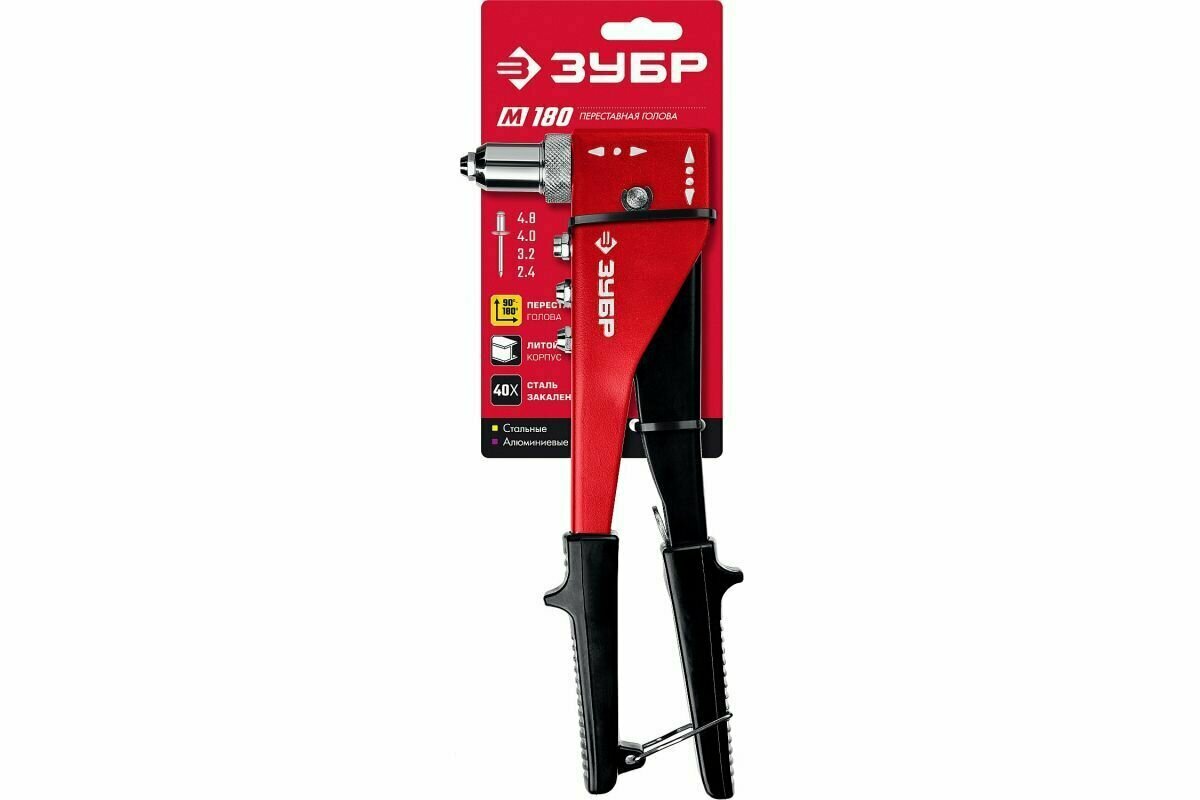 ЗУБР M-180, 90 - 180°, 2.4 - 4.8 мм, 270 мм, переставной заклёпочник (31199) интересное: