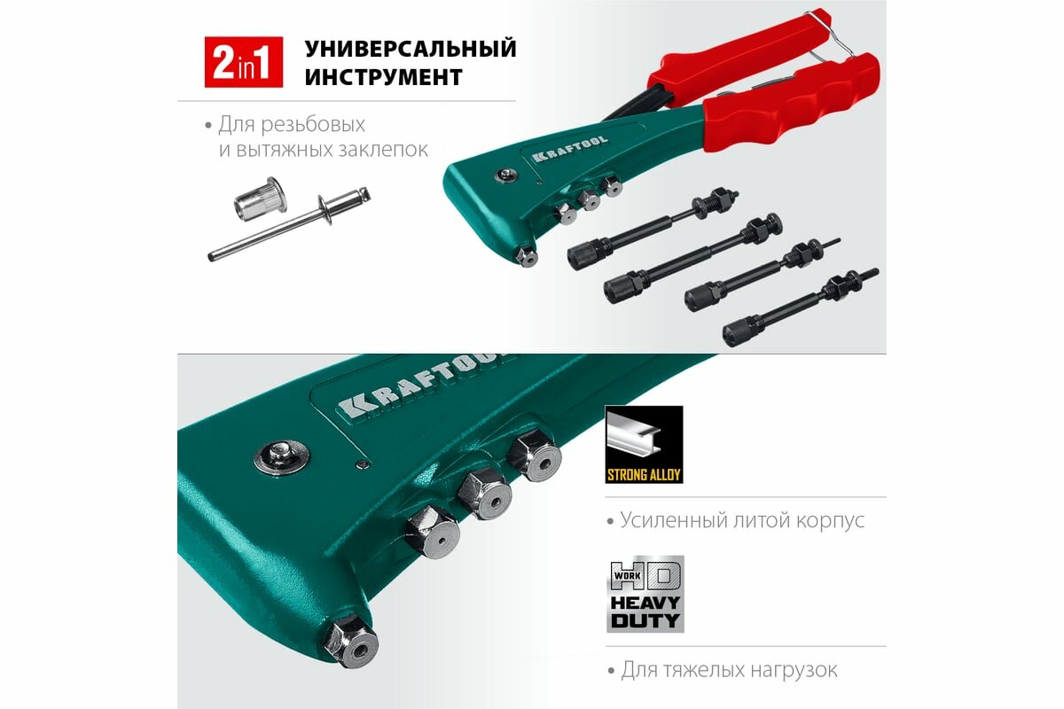 KRAFTOOL Combo2-M6 Комбинированный литой заклепочник в кейсе, 2 вида заклёпок 31180