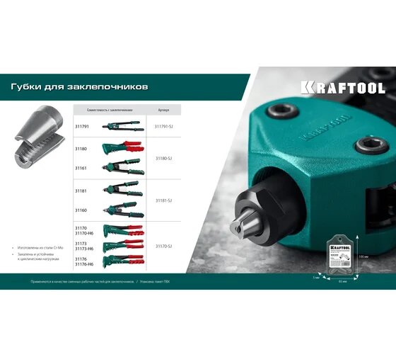 Губки сменные для заклепочников 31181, 31160, KRAFTOOL 31181-SJ интересное: