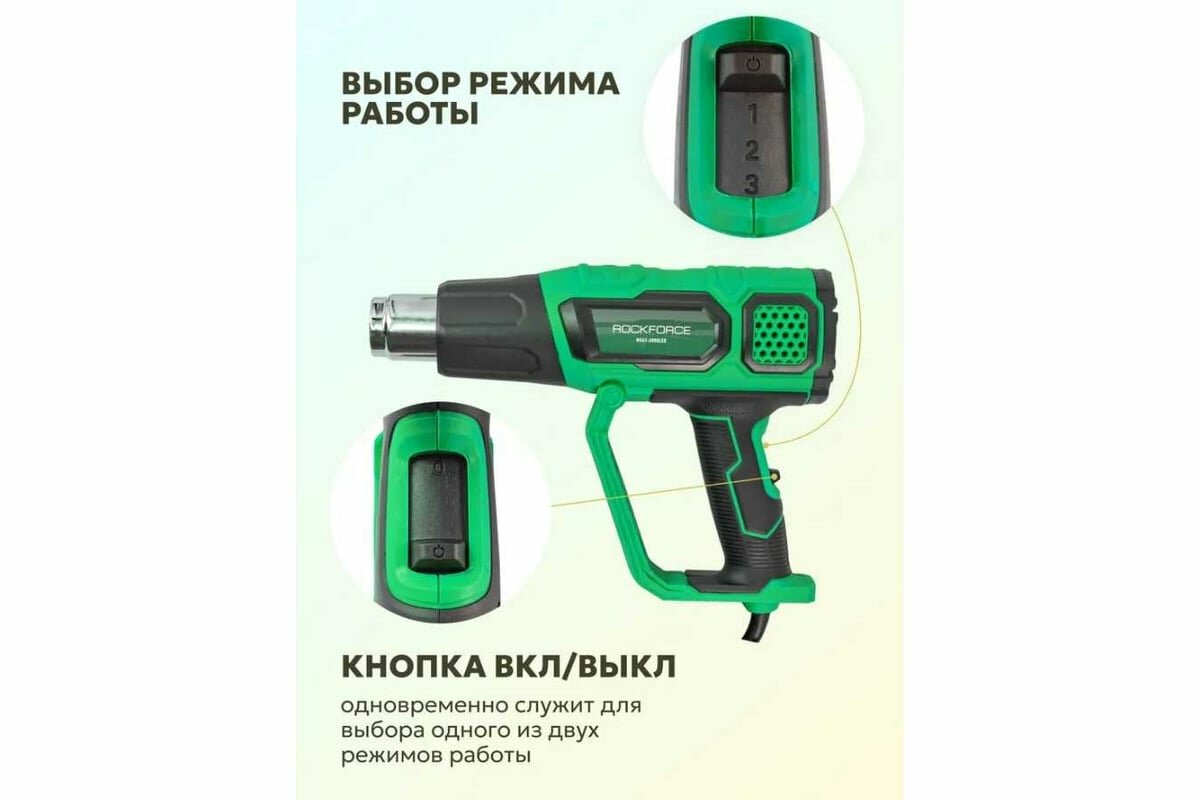 Фен промышленный RF-HG65-2000LED с насадками (220В,5060Гц,2000Вт, 60350600С°, 50300500лмин,3 режима, ROCK FORCE RFHG652000LED (1 шт.)
