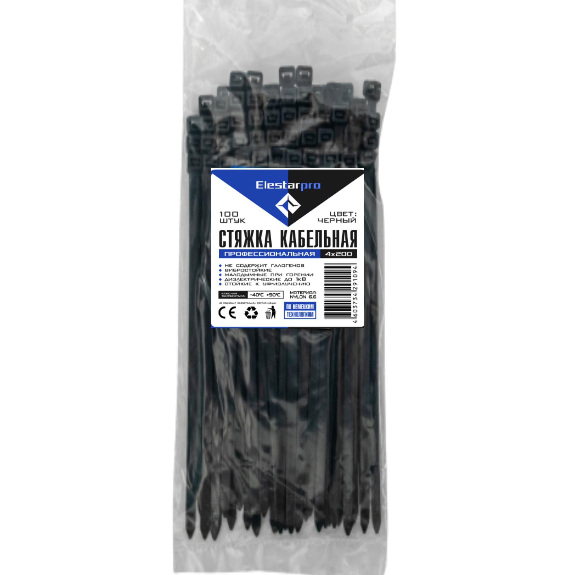 Стяжка (хомут) нейлоновая пластиковая ElestarPro 4x200мм, 100 штук в упаковке черная