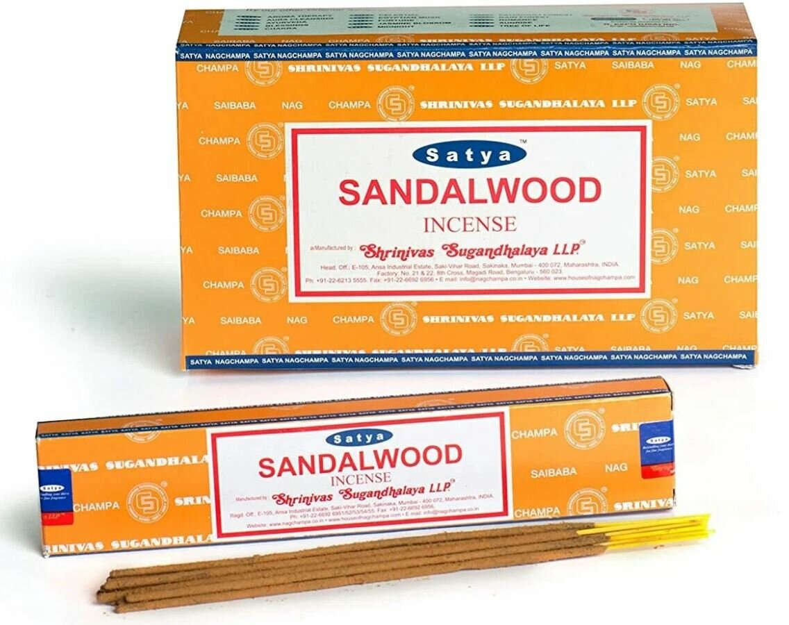 Аромапалочки Сандаловое Дерево Сатья, Sandalwood Satya, 2 кор. по 15 палочек