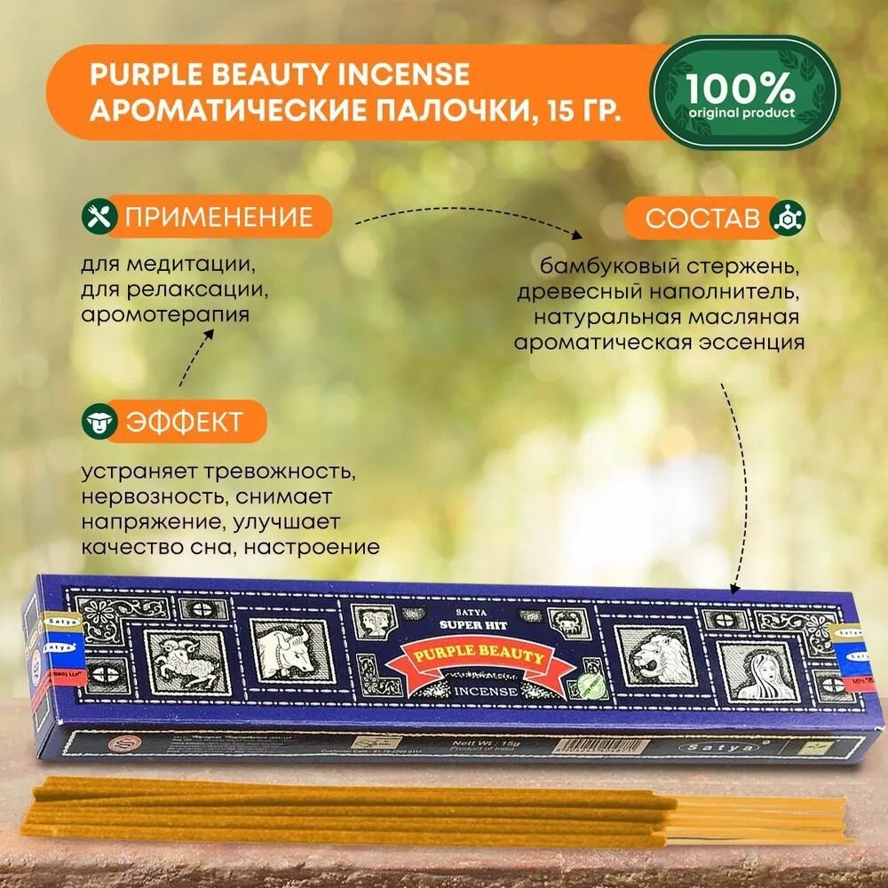 Ароматические палочки благовония Satya Сатья Пурпурная Красавица серия Супер Хит Super Hit Series Purple Beauty, 15 гр