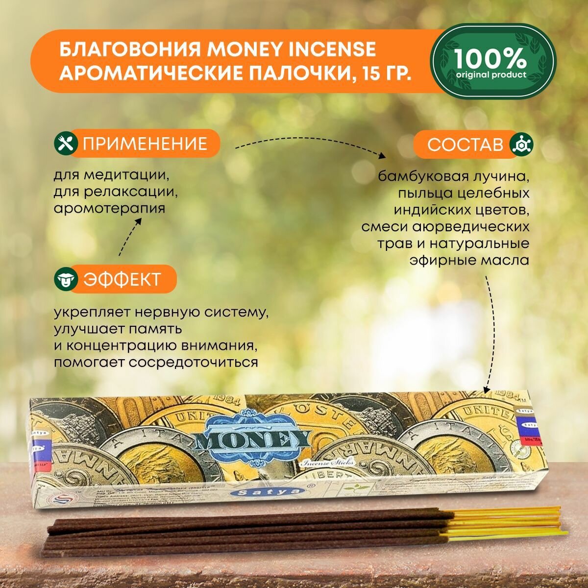 СохранитьSatya Деньги - 15 гр, ароматические благовония, палочки, Money - Сатия, Сатья интересное: