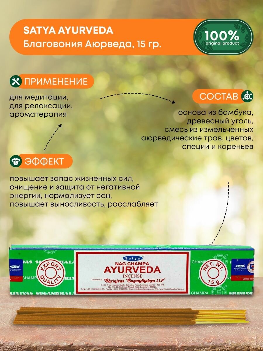 Ароматические палочки / Благовония Сатья "Аюрведа / Ayurveda" 15 гр