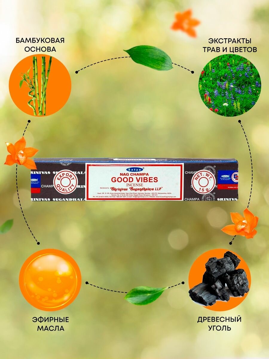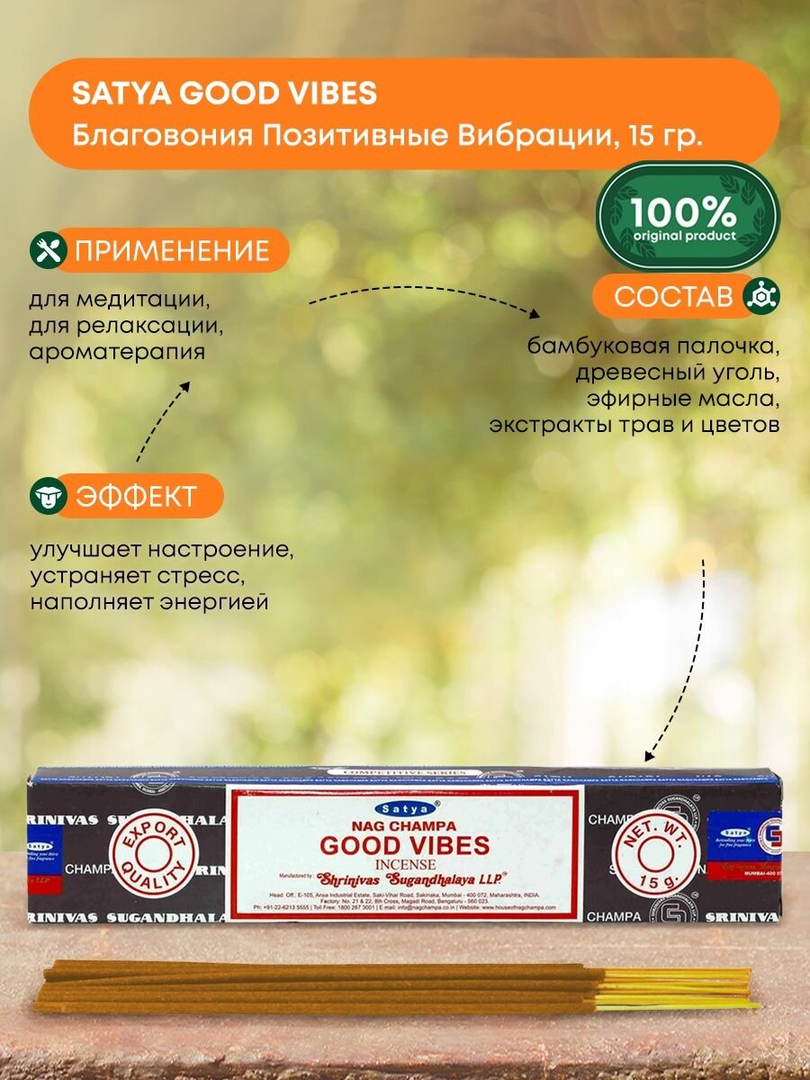 Купить Благовония Satya Good Vibes (Волны добра) 15 грамм, 12 палочек