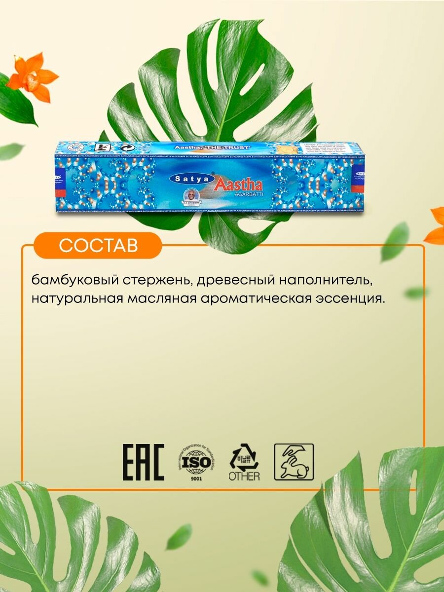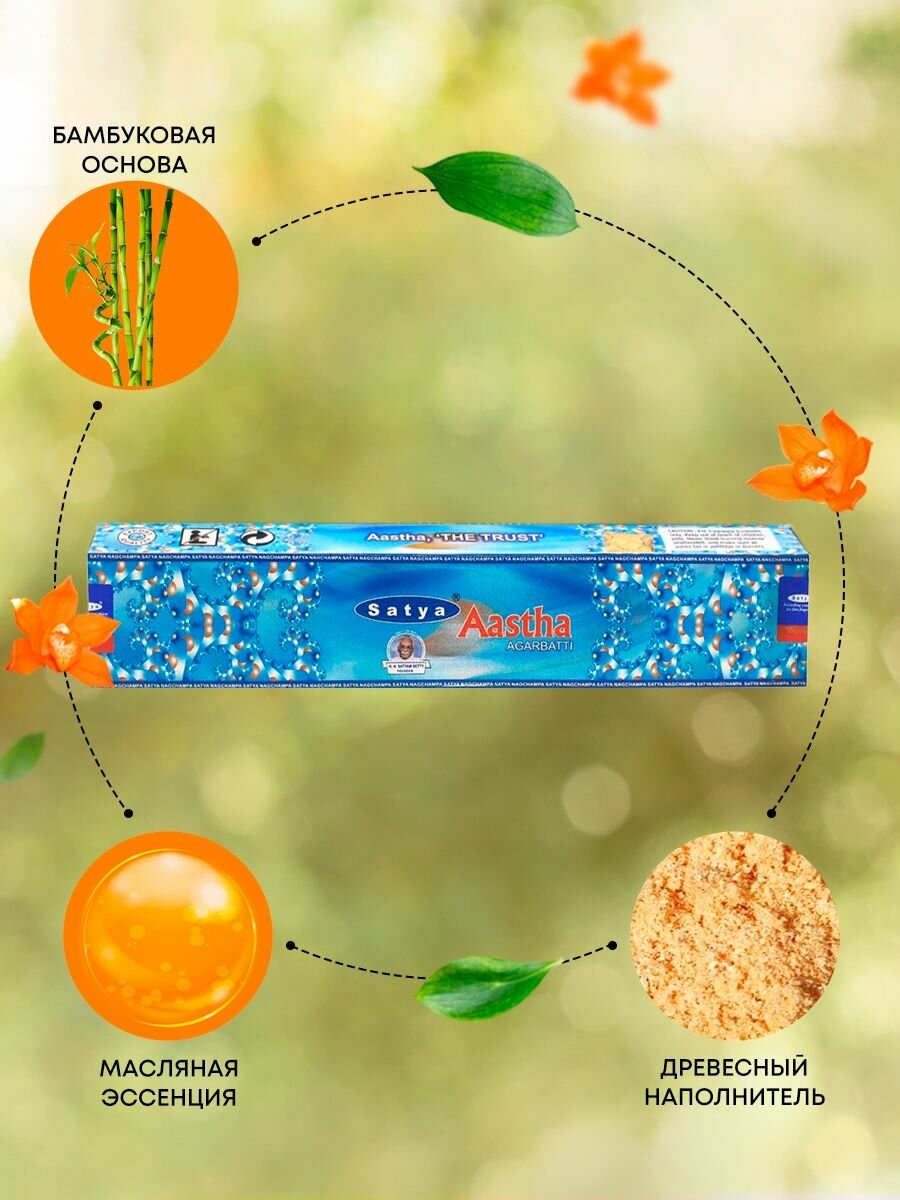 Купить Благовония Satya Aastha, Сатья Ааштха, ароматические палочки, индийские, для дома, медитации, 15 г