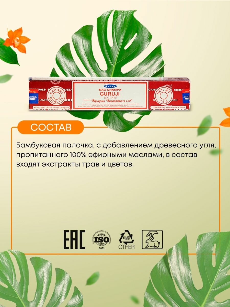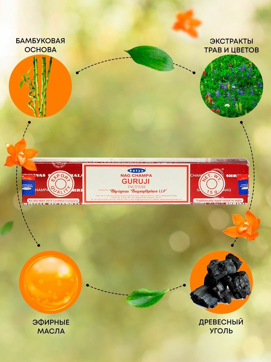 Купить Благовония ароматические палочки индийские "Гуруджи", ароматерапия и медитация дома, Satya Guruji, 15г