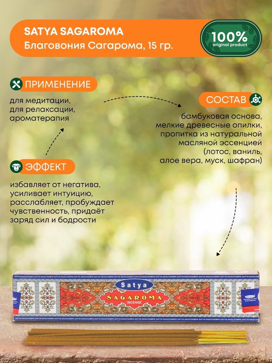 Ниже Вы можете прочитать отзывы на Индийские благовония Satya Sagaroma 15гр, ознакомится с подробными характеристиками, посмотреть интересные обзоры и фотографии на Индийские благовония Satya Sagaroma 15гр.