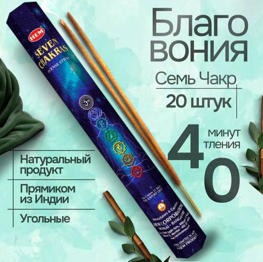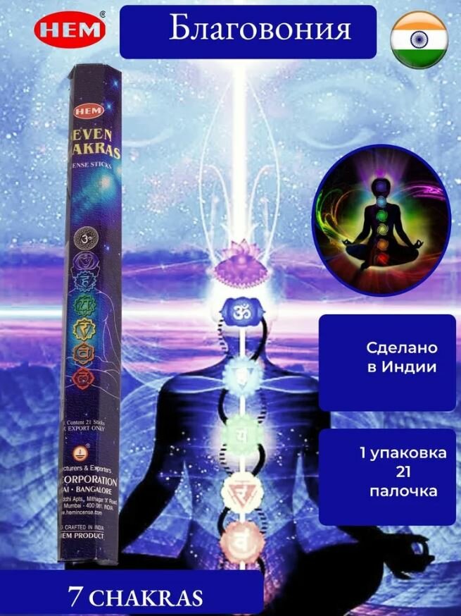 Набор благовоний HEM "Семь чакр ", 140 палочек, 7 ароматов, с подставкой