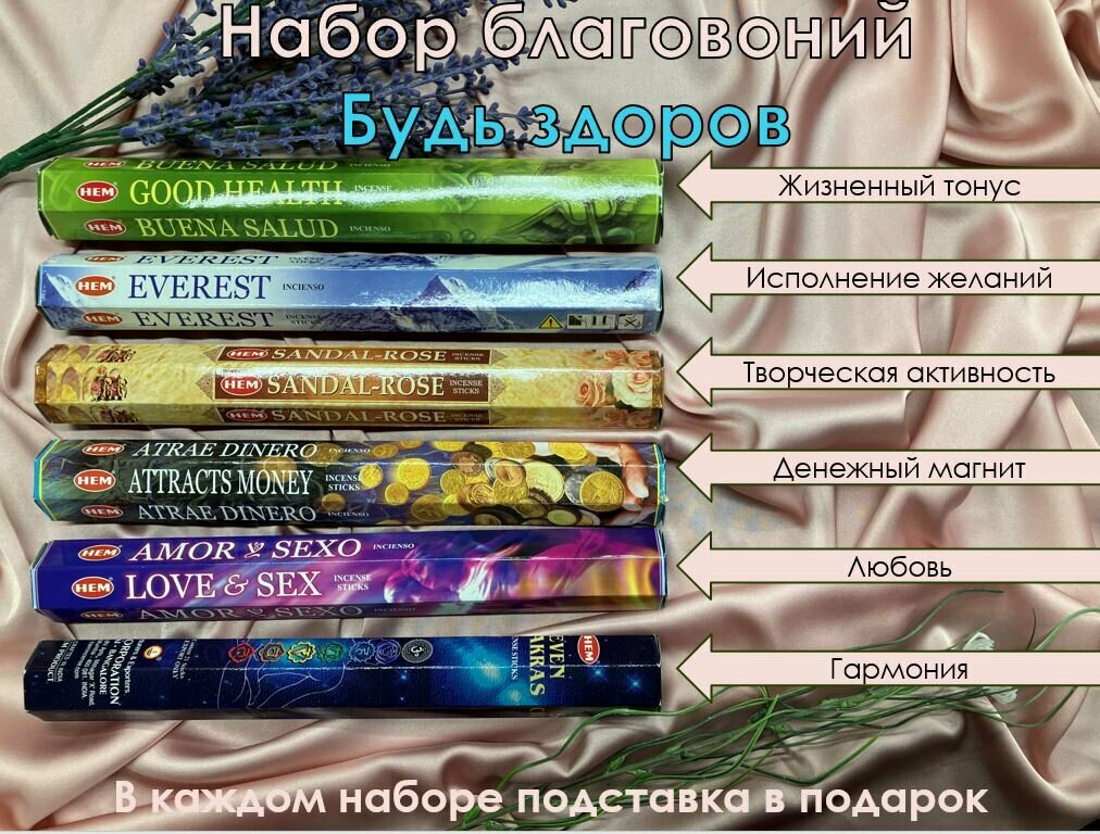 Купить Набор благовоний НЕМ Будь здоров (6 вариантов по 20 палочек + подставка в подарок) №3