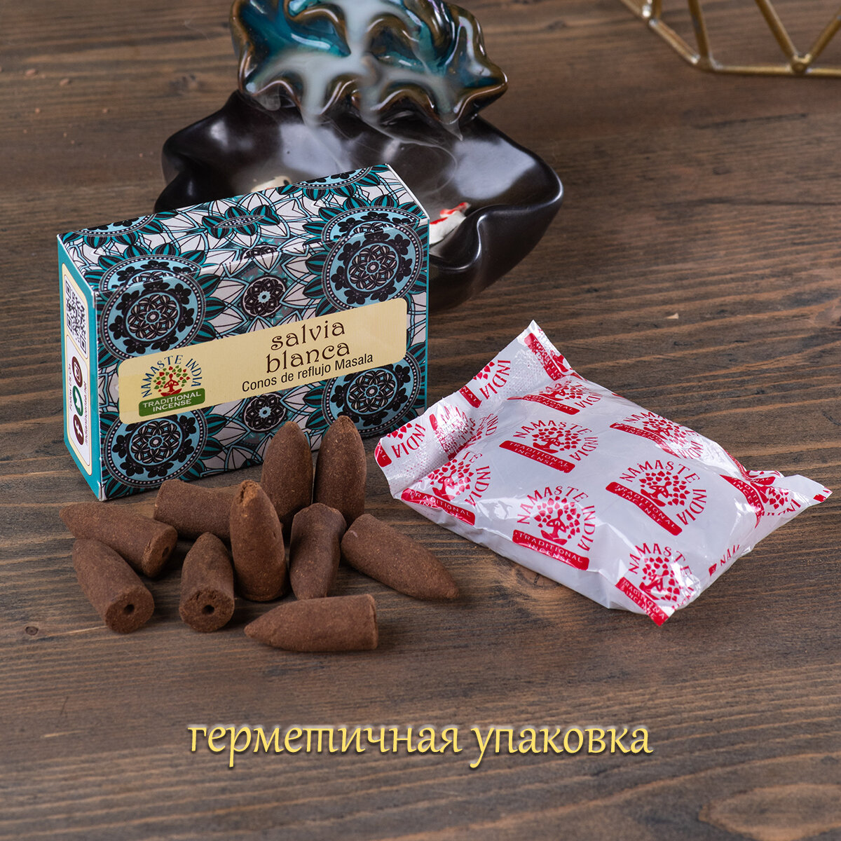 Благовония Orkay Белый шалфей White Sage ароматические конусы стелющийся дым, 1 уп 10 шт, 35 г