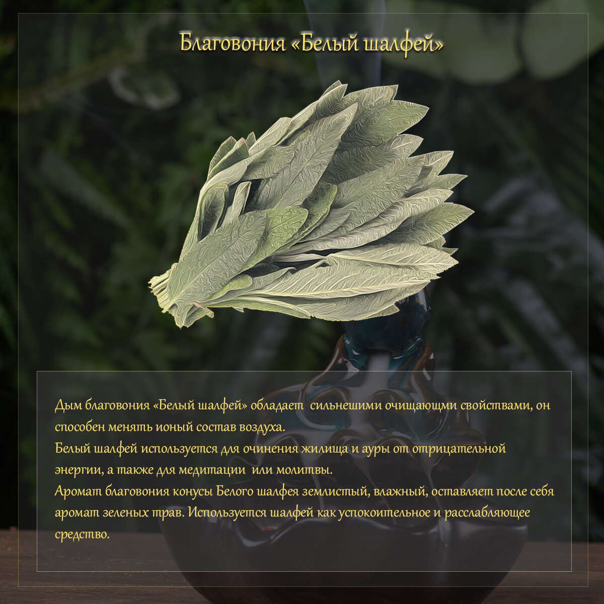 СохранитьБлаговония конусы стелющийся дым Orkay Белый шалфей White Sage, 10 ароматических конусов, 35 г, Индия интересное: