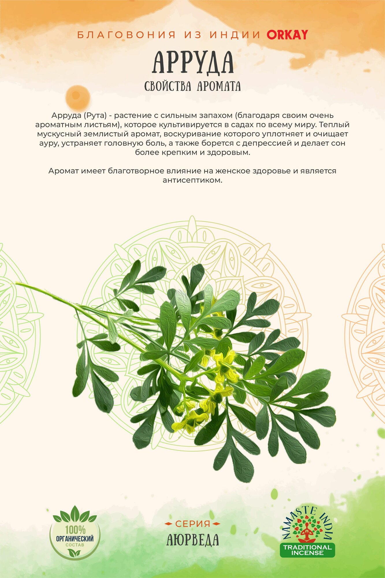 СохранитьБлаговония конусы стелющийся дым Orkay Арруда Arruda, 35 г, 10 ароматических конусов, Индия интересное: