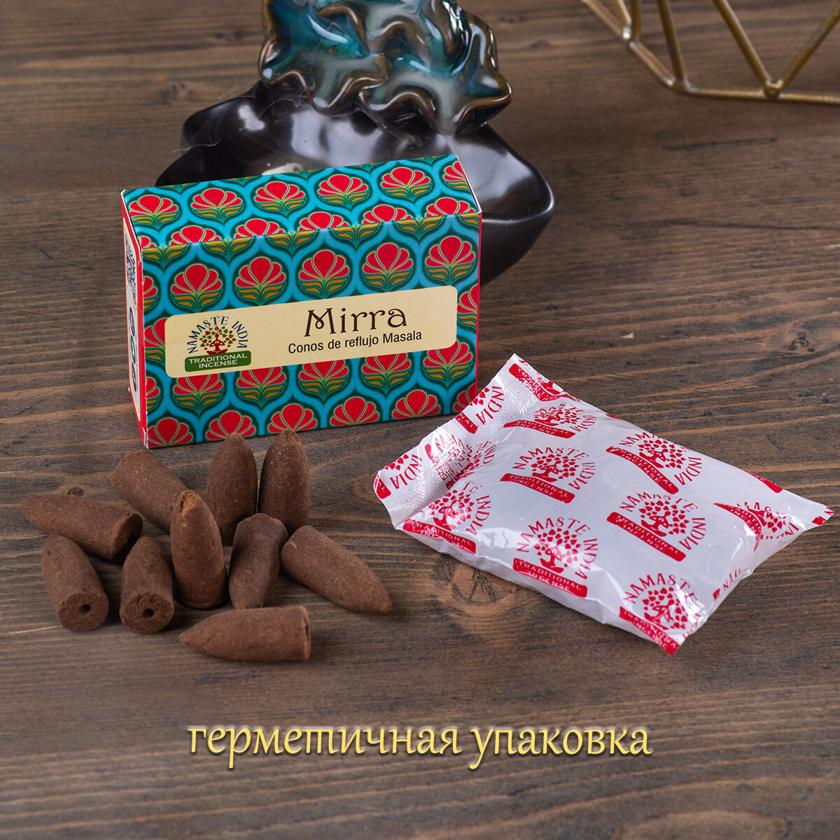 Купить Благовония конусы стелющийся дым Orkay Мирра Mirra, 35 г, 10 ароматических конусов, Индия