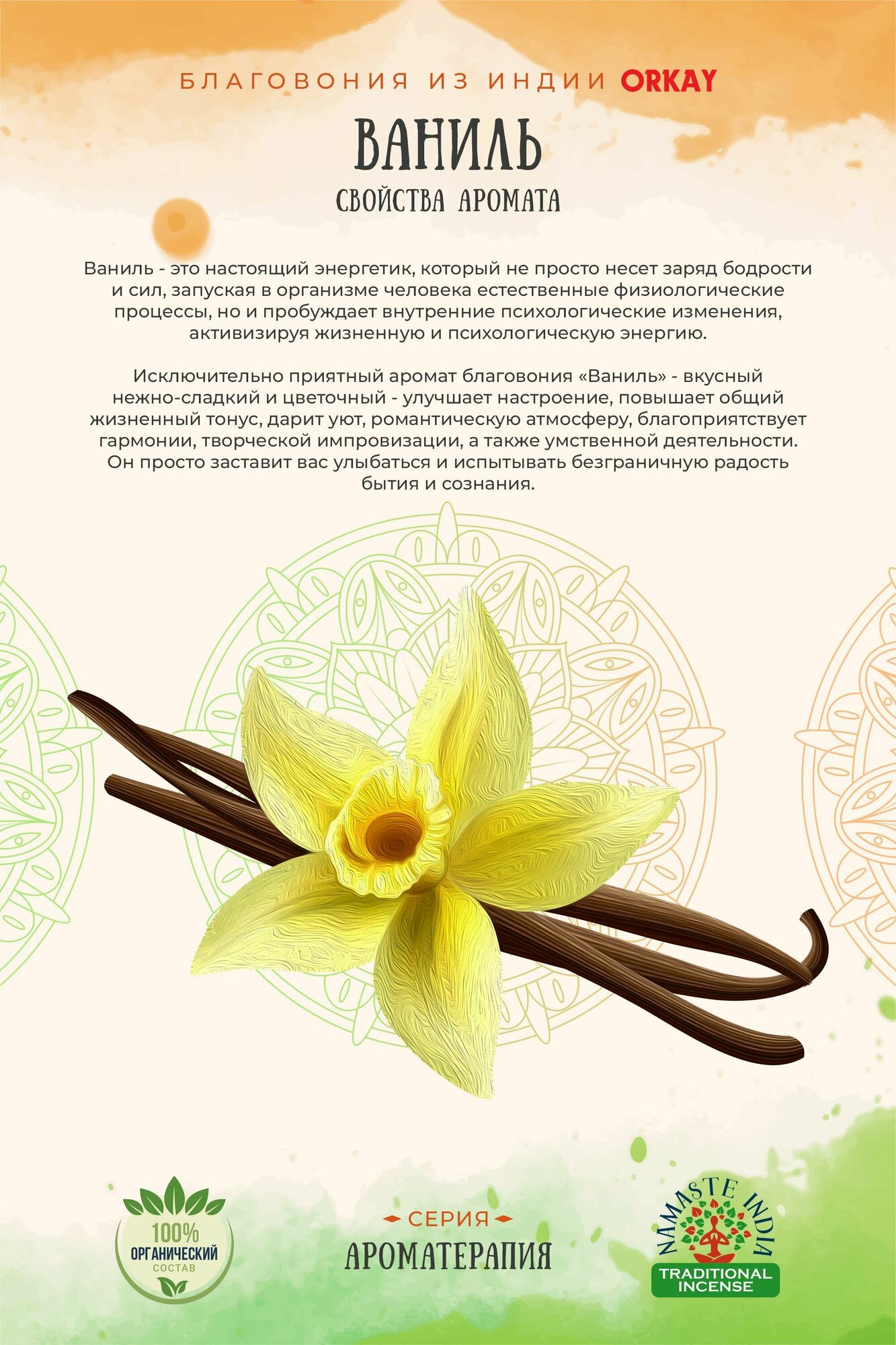 Благовония Orkay Ваниль Vanilla индийские ароматические палочки, 15 г 12-15 штук