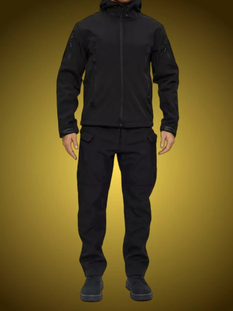 Костюм тактический туристический софтшелл, цвет черный, размер M