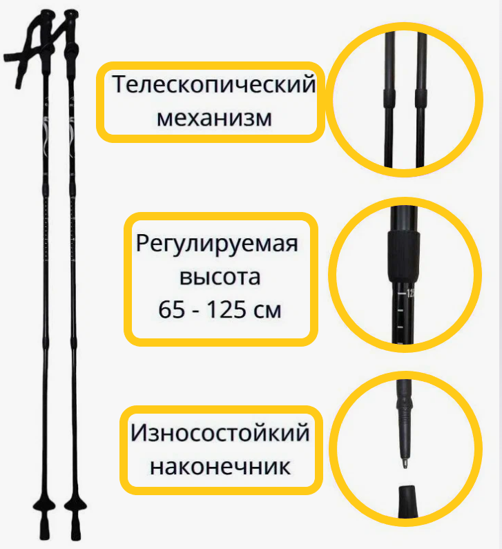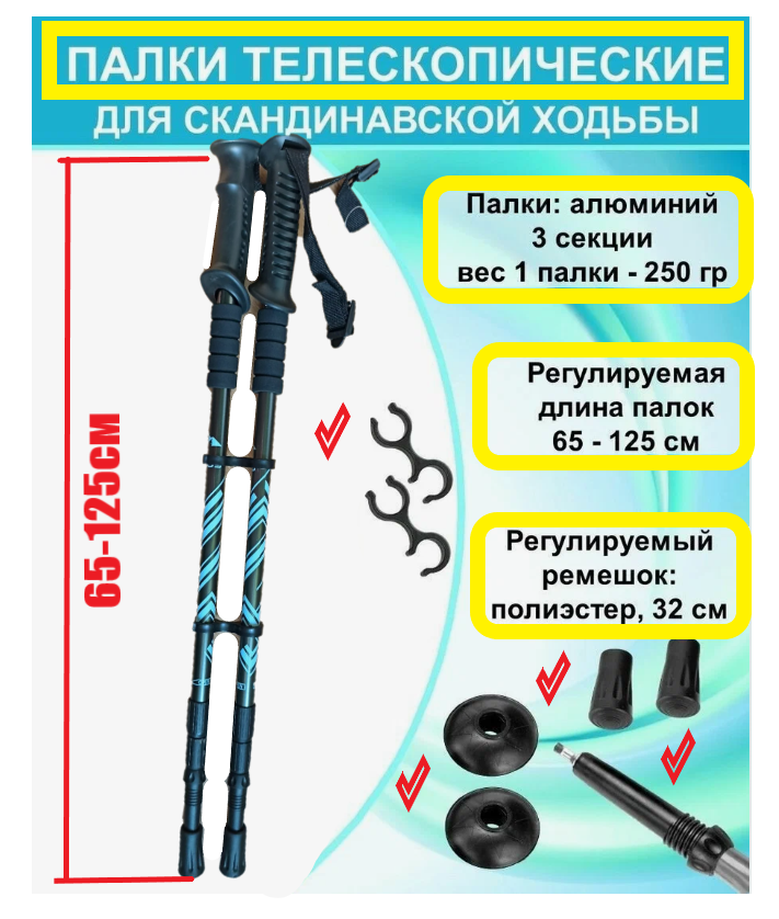 Палки для скандинавской ходьбы всесезонные ECOS WP-05, регулируемая длина от 65 до 120 см