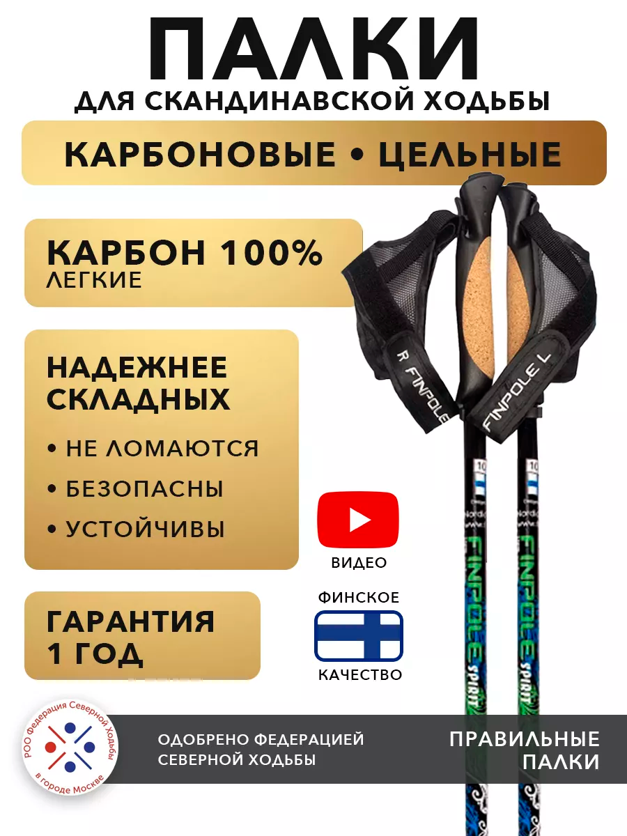 Палки для скандинавской ходьбы цельные Finpole SP карбоновые 100 см