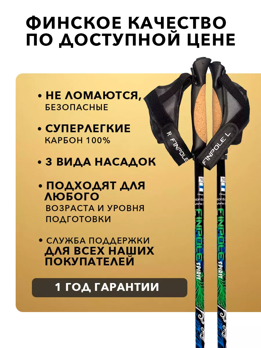 Скандинавские палки Finpole Spirit 100% Carbon, 120 см, для роста 175-183 см