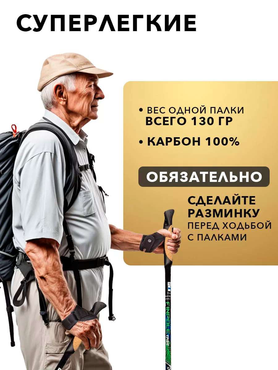 Скандинавские палки Finpole Spirit 100% Carbon 125 см, для роста 180-190 см