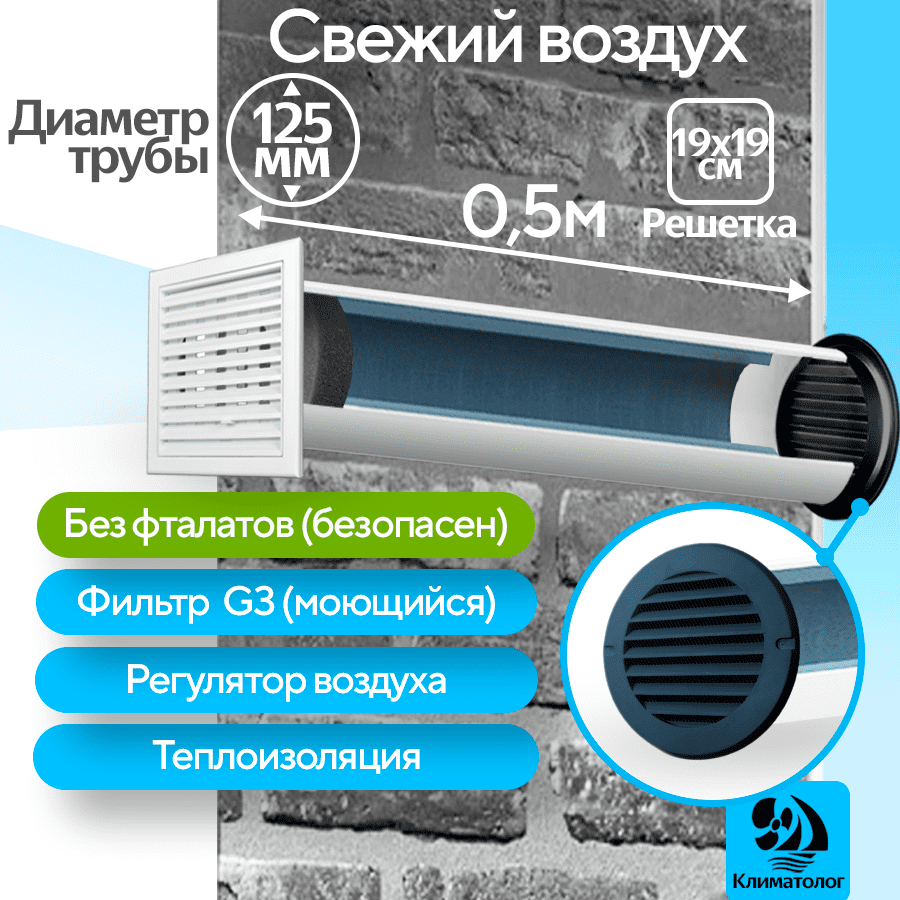 Приточный клапан вентиляционный, КП-2005-03-GG, диаметр 125мм, длина 0,5м